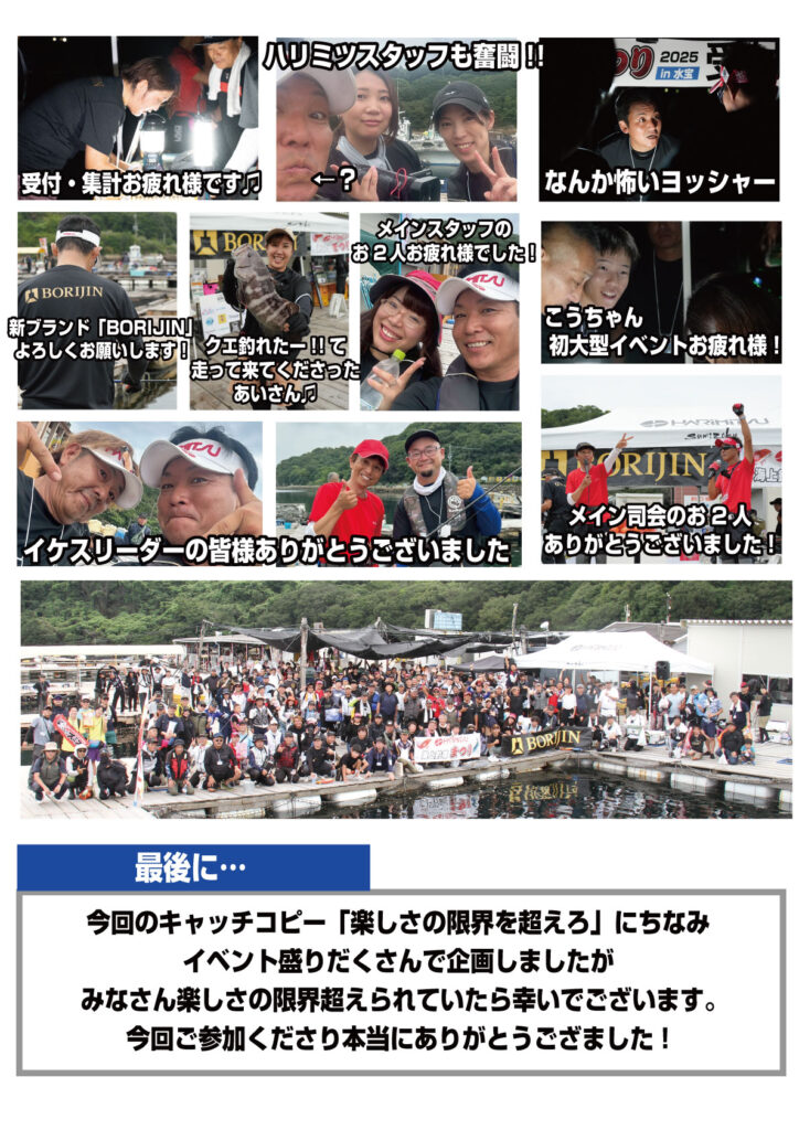 【ハリミツ海上釣堀まつり2025in水宝】に参加していただいた皆様、スタッフでお手伝いいただいた皆様、ありがとうございました。