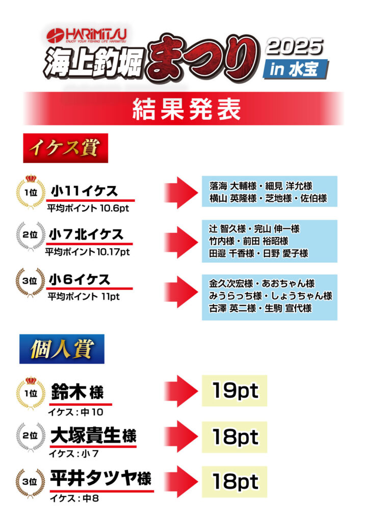 【ハリミツ海上釣堀まつり2025in水宝】御礼&報告&結果発表