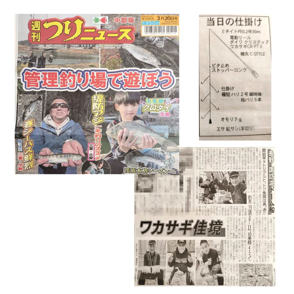 週間つりニュース新聞 (中部版) 2026年3月20号において、鈴木氏のワカサギ釣行記&仕掛図が記載されました。